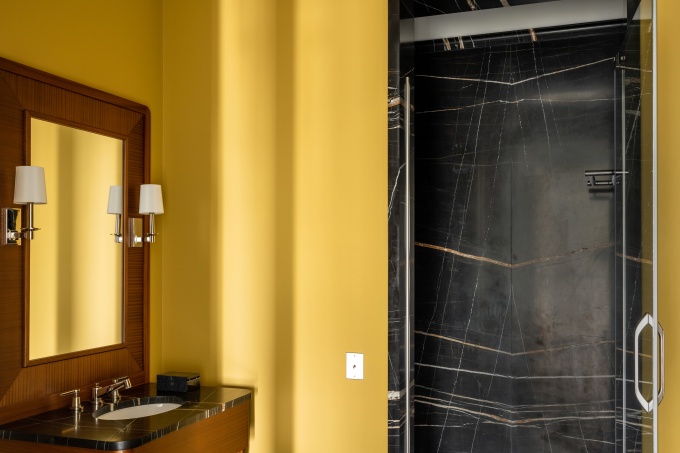 Связать их удалось при помощи встроенного лифта, который благодаря продуманной звукоизоляции движется практически бесшумно. Стилистически заказчики хотели интерьер с атмосферой, напоминающей загородный дом: теплой, уютной, расслабленной. Авторы проекта предложили обыграть классическую американскую стилистику, наполнить интерьер теплыми оливковыми оттенками и «согревающими» фактурами дерева.