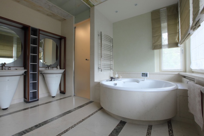 Работы начались с реконструкции фасада (его облицевали доломитом, украсили резными каменными вставками и изысканной ковкой) и коснулись интерьеров всех помещений в доме.