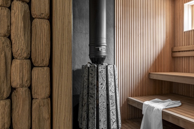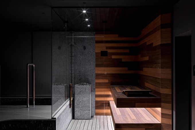 Недостатком встроенной сауны является как занятость уборной во время оздоровительных процедур, так и невозможность разместить много гостей в помещении ограниченной площади. Большие виллы в несколько этажей позволяют выделить полноценную комнату под парную. В таких домах часто интерьеры спортивных залов перекликаются с оформлением зоны отдыха и сауны. После тренировок или физических упражнений владелец усадьбы может поплавать в бассейне или посетить баню.