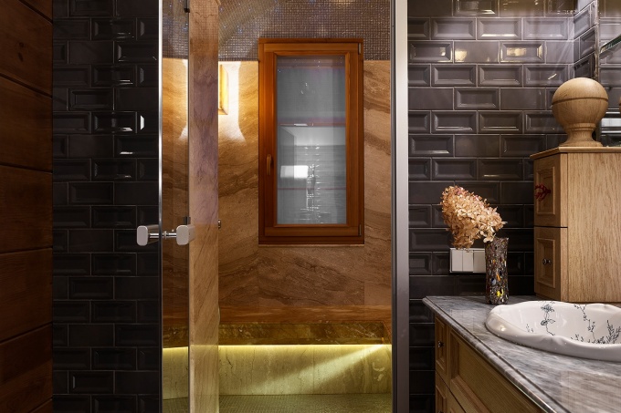 Современные сауны предполагают наличие более удобных и легких материалов. Вместо массивных конструкций из каменных плит стены выполняют из тонкого кафеля, обработанного деревянного бруса и прочих компонентов. Чтобы разработать уникальный интерьер бани, фото лучших мастеров со всего мира подойдут как нельзя лучше.