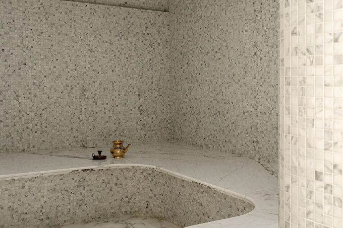Чаще всего современная турецкая баня внутри интерьер имеет более функциональный, чем традиционные европейские аналоги. Она предусматривает возможность посещения комнаты даже людьми с ослабленным организмом, которые долго не могут переносить высокие температуры. Декоратор также должен подобрать соответствующий стиль отделки раздевалки и теплой комнаты, чтобы интерьеры саун, бань и хаммамов были выполнены в одном художественном направлении.