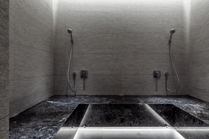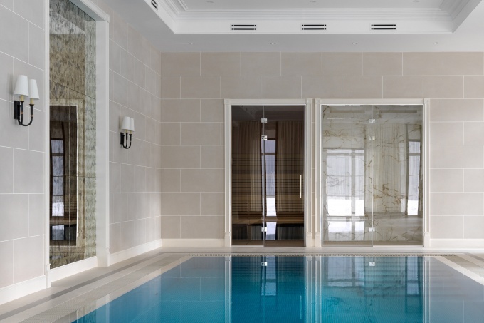 Здание с правильными пропорциями в отделке серо-бежевым травертином с темной подшивкой крыш снаружи требовало минимального вмешательства. Зато внутри следовало действовать более радикально: хаотичная планировка и чрезвычайно эклектичный, даже избыточный, дизайн (чего стоит один бассейн с росписями на библейские темы!) заставили дизайнеров демонтировать все до остова. «Заказчики не любят показной роскоши, они хотели спокойный интерьер с теплой, солнечной палитрой и матовыми фактурами. Нейтральный и гармонирующий с окружающей природой и рациональным фасадом. Главная сложность заключалось в том, что все работы (включая полную перепланировку и замену инженерных систем) следовало завершить за год», - рассказывают авторы проекта.