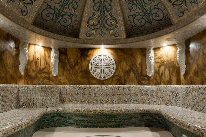 Частный SPA-комплекс входит в состав подмосковной усадьбы, расположенной в живописном месте в окружении соснового бора. Для ее оформления был приглашен дизайнер Андрей Проценко, с которым заказчик уже ранее работал и который спроектировал интерьеры остальных построек на участке: главного дома, банкетного зала для торжественных приемов, гостевого дома (более подробно о работе над главным домом и банкетным залом – см. здесь). Само здание SPA-комплекса построено по проекту архитектора Герасима Васелишина в неоклассическом стиле с портиком, колоннадой и рустованным камнем.