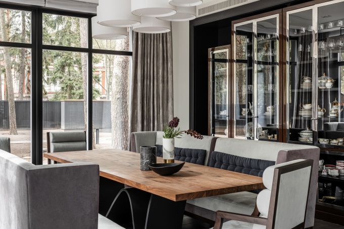 С заказчиками она знакома давно, неоднократно вместе работала и хорошо знает их вкусы и предпочтения. Задача стояла создать интерьер с теплой и гостеприимной атмосферой, отразить в деталях индивидуальность хозяев и наполнить пространство искусством. Заказчики обратились с уже готовым проектом дома: строительство уже активно шло, но они опасались, что современная архитектура сделает семейный дом слишком холодным. «Мы начали с самого начала. Полностью поменяли проект, внесли изменения в готовую планировку, «утеплили» и смягчили пространство и вывели на первый план натуральную фактуру дерева. Оставаясь верными минималистским фасадам, мы создали в интерьере настроение укутывающего уюта», - рассказывает автор проекта. Решения принимались быстро, работа шла буквально с листа, поэтому интерьер получился таким живым и волнующим.