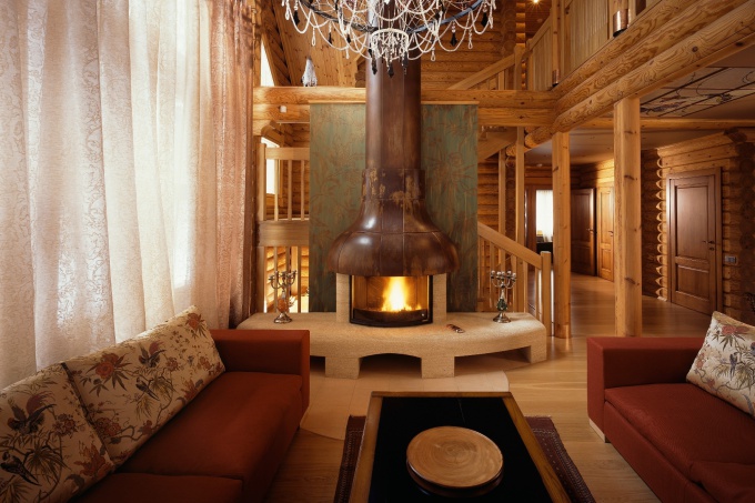 Деревянные балки и облицовка объемов деревянными панелями, напоминающими деревянный сруб, сочетаются с авторскими элементами декора и дизайнерской европейской мебелью, в итоге рождая роскошный интерьер в классическом стиле.