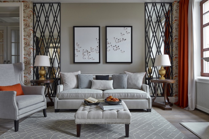 «Мне очень повезло с заказчиками! Это люди с хорошим вкусом, они разбираются в современных трендах и готовы сочетать несочетаемое: буазери, кессоны, пышные классические карнизы, люстры, люстры из муранского стекла и другие приметы парадной классики с дизайнерскими диванами и креслами насыщенного изумрудного и синего цветов», - рассказывает автор проекта.