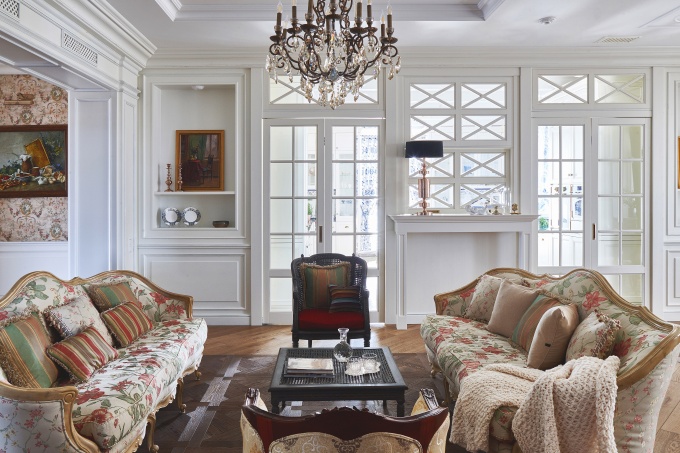 Архитектор Олег Клодт и дизайнер Анна Агапова создали интерьер, в котором прошлое и настоящее столь тесно переплетаются, что создается полное ощущение путешествия во времени. Заказчики приобрели современный дом на Рублево-Успенском шоссе, они мечтали о настоящем «семейном гнезде» в духе европейских особняков, полных истории и традиций.