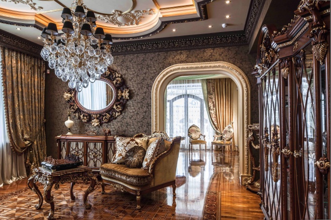 Дворцовый стиль как нельзя лучше подойдет для внутреннего оформления дома, так как для этого направления требуется большое количество свободного пространства. Здесь каждая составляющая продумывается с особой тщательностью, все детали призваны подчеркивать индивидуальность и богатство интерьеров, говорить о респектабельности и роскоши.