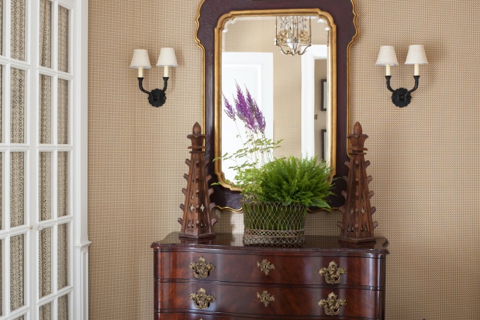 В оформлении этой зоны - собирательного образа дома, правильно использовать акцентные, самые эффектные приемы декорирования. Например, мозаичные панно, лепнину, авторскую мебель... Важно определить и центральный элемент, который акцентирует и удерживает внимание.