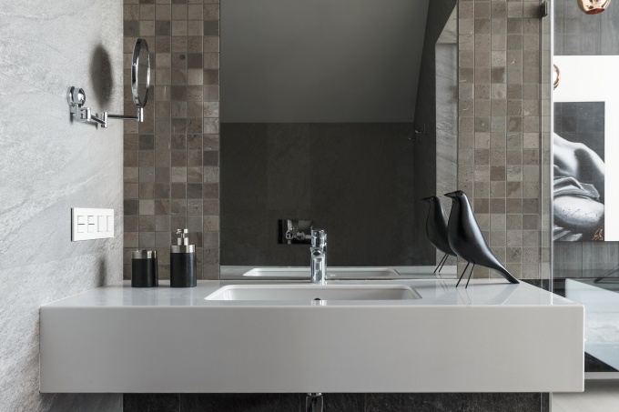 «Клиенты – взрослые люди с хорошим вкусом, их дети живут отдельно и часто приезжают в гости, а в доме постоянно проживают две собаки породы родзийский риджбек, что во многом определило выбор в пользу практичных решений и антивандальных материалов. Собственно, любимый вечерний досуг хозяев – просмотр телепередач на диване в гостиной с собаками, которые в это время греются у камина, - рассказывает автор проекта Шамсудин Керимов.- В целом мы стремились создать интерьер современный, гармоничный и независимый, который долго будет оставаться актуальным. За основу мы взяли западный архитектурный подход, при котором дом не подавляет человека, а дает ощущение воздуха, свободы, покоя…»