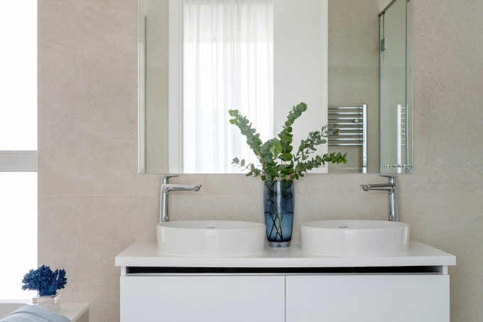 «На объекте я была всего три раза: первый раз на стадии бетонной пустой коробки, второй раз – после завершения чистового ремонта, перед расстановкой мебели и третий раз – при финальном декорировании и фотосъемке, – рассказывает автор проекта. Строительными работами занималась местная компания, поэтому основной сложностью стала дистанционная коммуникация, непросто было приспособиться и к ритму жизни киприотов. На острове никто никуда не спешит, не расстраивается по пустякам и не слишком педантично относится к качеству работ и их соответствию чертежам и техническому заданию. Поэтому контролировать процесс приходилось особенно тщательно по фотографиям в мессенджерах в режиме on line».