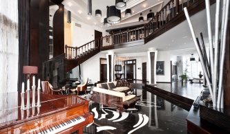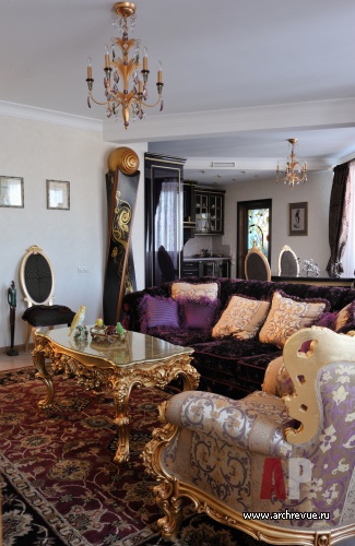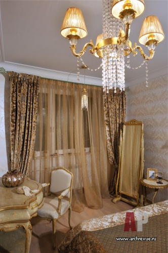 Для молодой девушки архитекторы спроектировали интерьер в стиле барокко. Но не в традиционном помпезном варианте, а с намеком на иронию и постмодернистской игрой. Интерьер получился легким, живым, веселым. Основой темой стал образ райской птицы в золотой клетке.