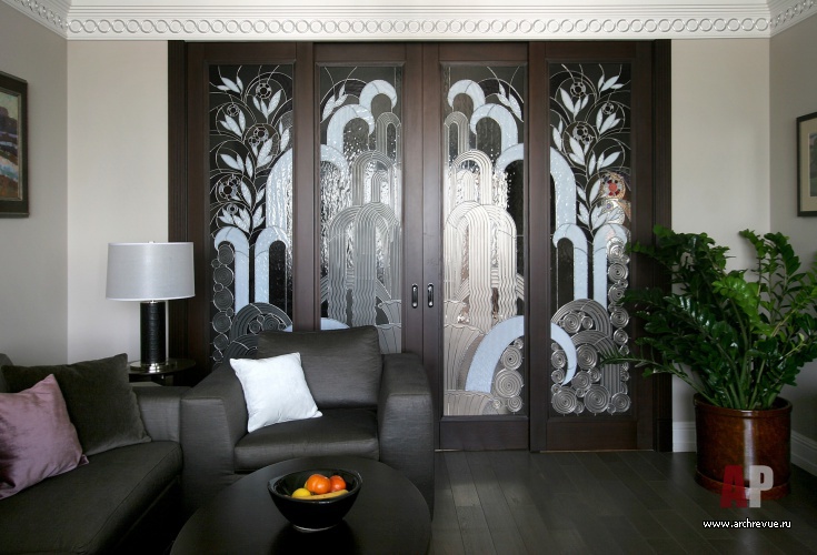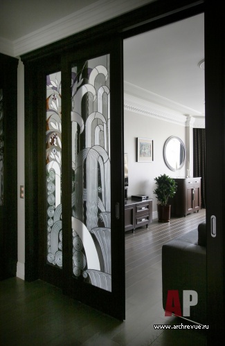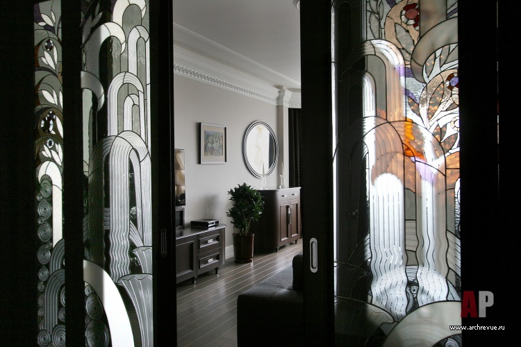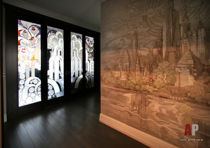 Для семьи с двумя детьми архитектор спроектировала урбанистический интерьер с мотивами ар-деко. Архитектор стремилась создать современный, стильный, легкий интерьер для жизни. Основными акцентами стали художественные витражи и живописные полотна российских художников музейного уровня.