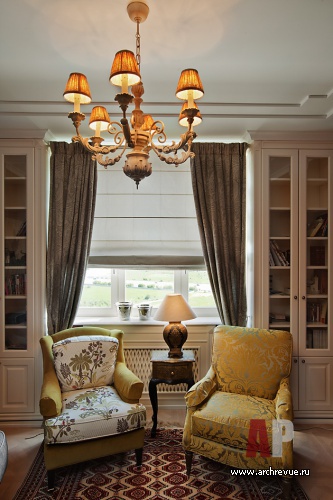 В интерьерах преобладают приметы неоклассического стиля. Лепной декор из гипса, авторские столярные изделия с филенками, паркет-«плетенка» - все это отсылает к классической традиции оформления интерьеров.