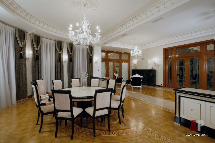 Пожалуй, самое парадное помещение в поместье – банкетный зал. Он исполнен в лучших традициях дворцового дизайна.