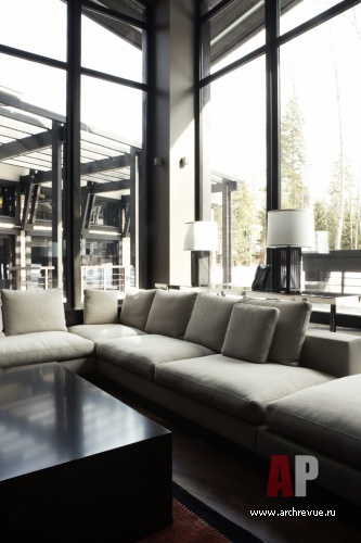Дом в современном стиле с панорамным остеклением находится на опушке леса, среди высоких многолетних деревьев. При его постройке, все деревья бережно сохранялись. Декоратору хотелось поддержать экологическую тему в интерьере и наполнить помещения разнообразными природными материалами и фактурами.