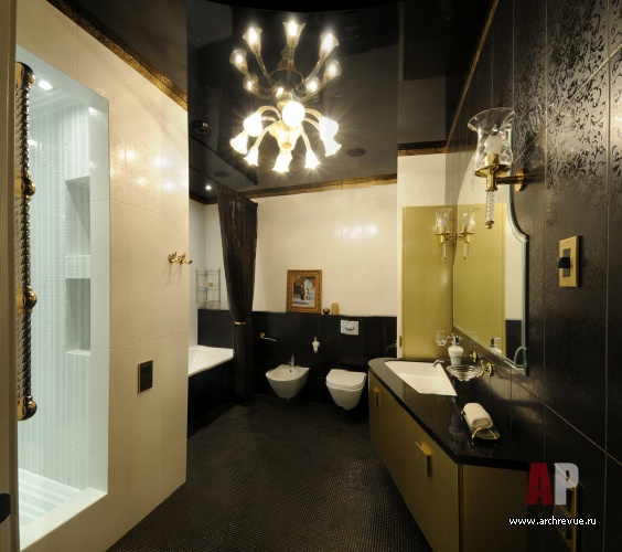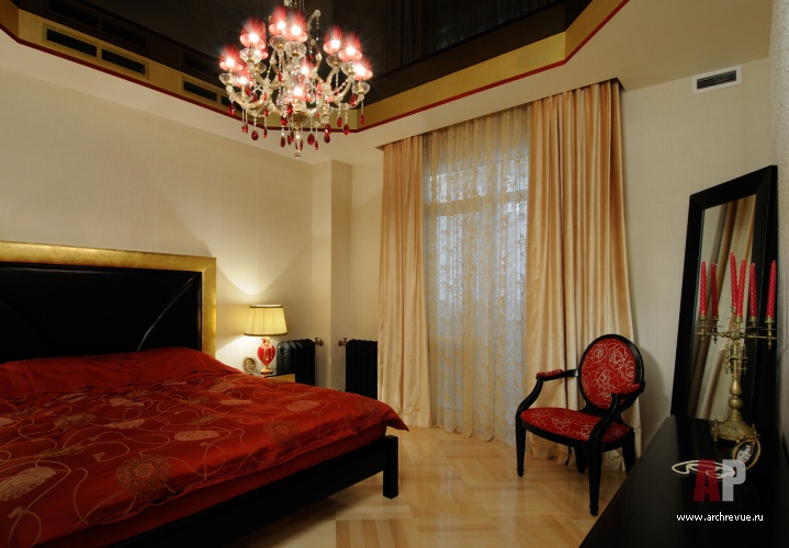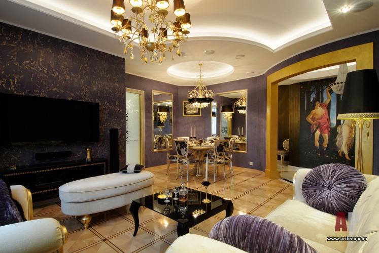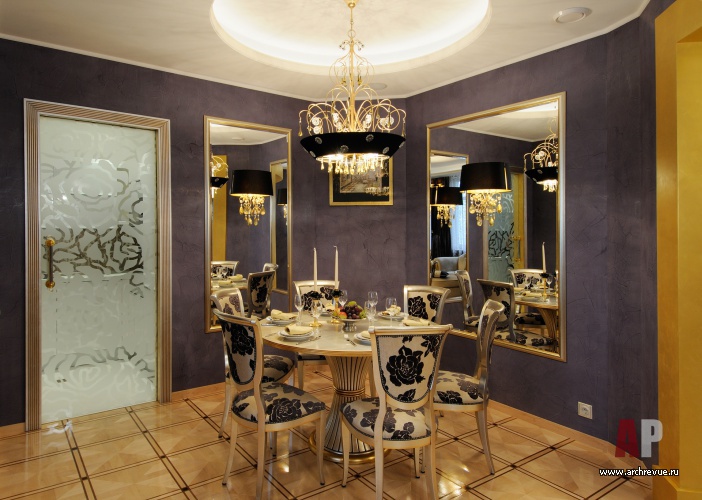 В оформлении интерьера авторы используют приемы ар-деко в сочетании с элементами гламура и предпочитают выразительные, насыщенные цвета. В отделках применяется дерево, фактурные штукатурки, камень и золочение.