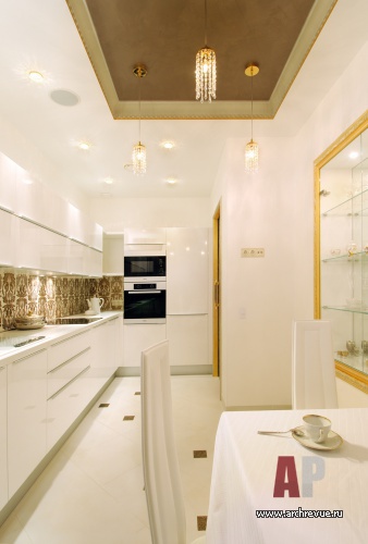 Авторы используют возможности потолочных плоскостей – за сложным рельефом скрываются техническая начинка. Важную роль играет освещение. Каждая из зон имеет свой световой сценарий