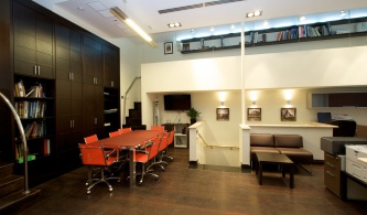 Малый дом – приватное пространство хозяев. Гостиная, совмещённая с кухней и столовой, кабинет, мужская и женская спальни с примыкающими к ним санузлами и гардеробными – таково его наполнение.