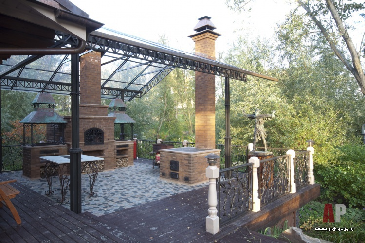 Большой дом задуман местом для отдыха с семьёй и друзьями. Здесь обозначены холл, гостиная-столовая-кухня, домашний кинотеатр и банный комплекс с комнатой отдыха, парилкой, душевой и турецкой баней. В мансарду поместили бильярдную. Круговая терраса имеет выход на открытую кухню с большой русской печью, тандыром и мангалами.