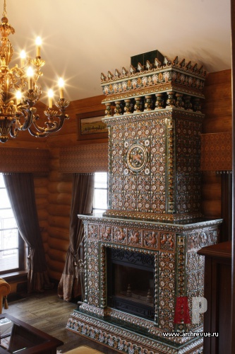 В этом проекте нашей целью было создать атмосферу русского дома, но без помпезности, историзмов и ложной народности. В этих домах многое, почти всё, делалось вручную нашими мастерами и художниками: резной декор, витражи, ковка, росписи, изразцовый камин.