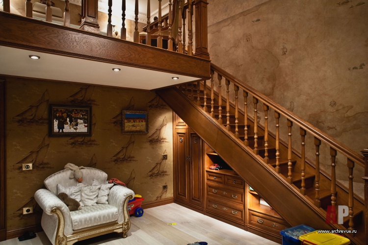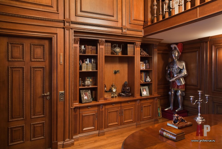 Заказчик – собиратель предметов искусства – поставил задачу создать классический буржуазный интерьер с отсылками к традиционному английскому стилю. Декорированию предшествовала серьезная инженерная работа по укреплению несущих элементов и функциональных надстроек.