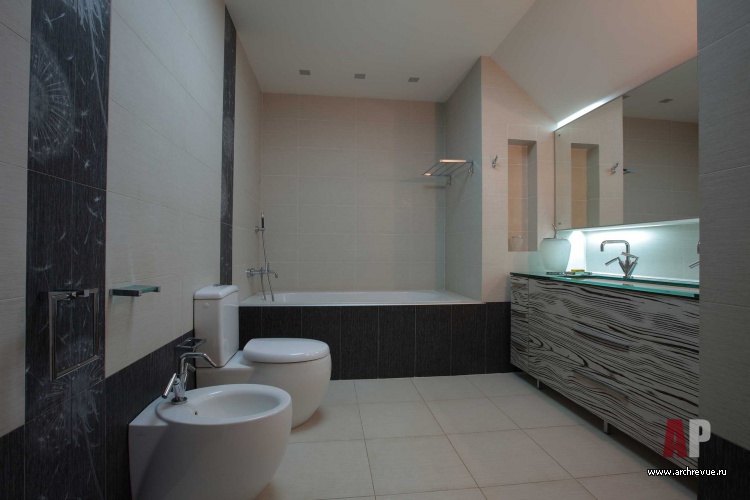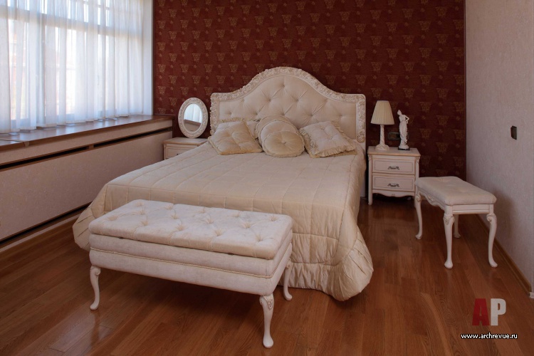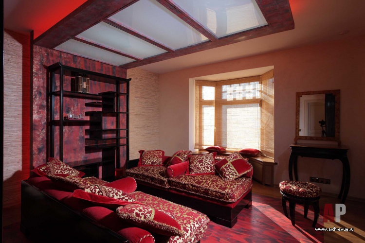 На контрастах решен и жилой этаж, где спальня в стиле Людовика XVI соседствует с восточной комнатой отдыха (она же выполняет функции библиотеки) и ультрасовременной ванной.