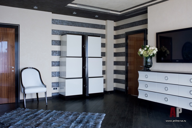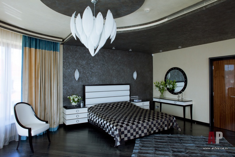 При первой встрече с архитектором заказчики поставили задачу спроектировать интерьер в элегантном минимализме, но в процессе работы выбор был сделан в пользу ар-деко в черно-белом варианте.