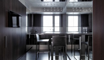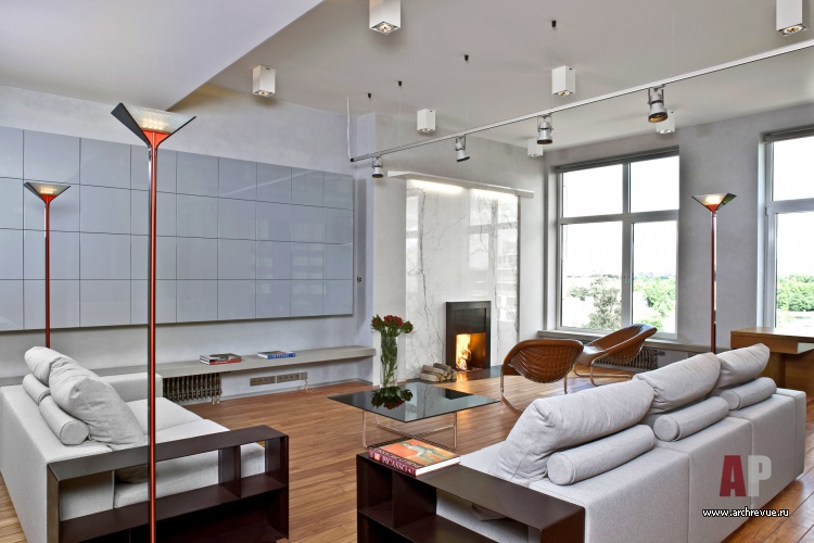 В облике двухэтажной квартиры просматриваются отсылки к классикам мировой архитектуры: от Макинтоша до Лютенса и Войси. Заказчик долгое время жил в Англии, поэтому пересечения с наследием британских архитекторов вполне оправданы. Квартира расположена на самом вверху многоэтажного дома, откуда хорошо видно город, а больше – облачное питерское небо.