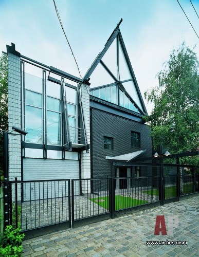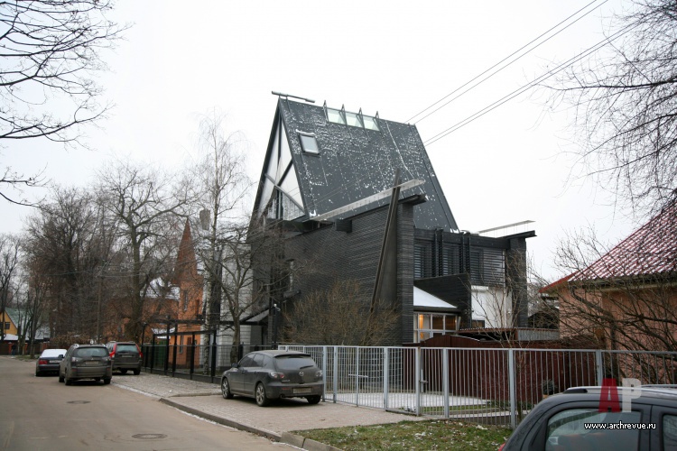 Авангардный дом расположен в поселке художников «Сокол» и стилистически развивает традиции застройки этого уникального района Москвы. Из-за черно-белого цветового решения, яркой образности и утонченного силуэта сам автор называет его «Инь-Янь», а местные жители «Черным квадратом».