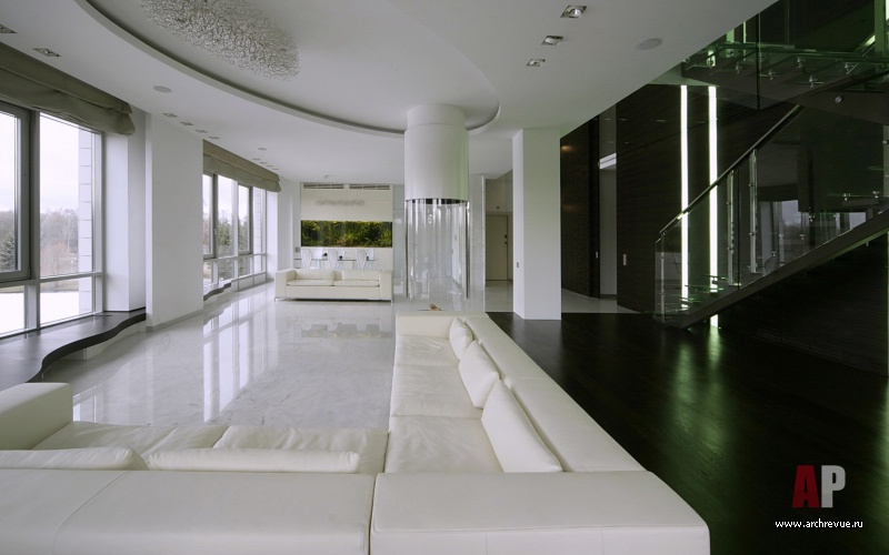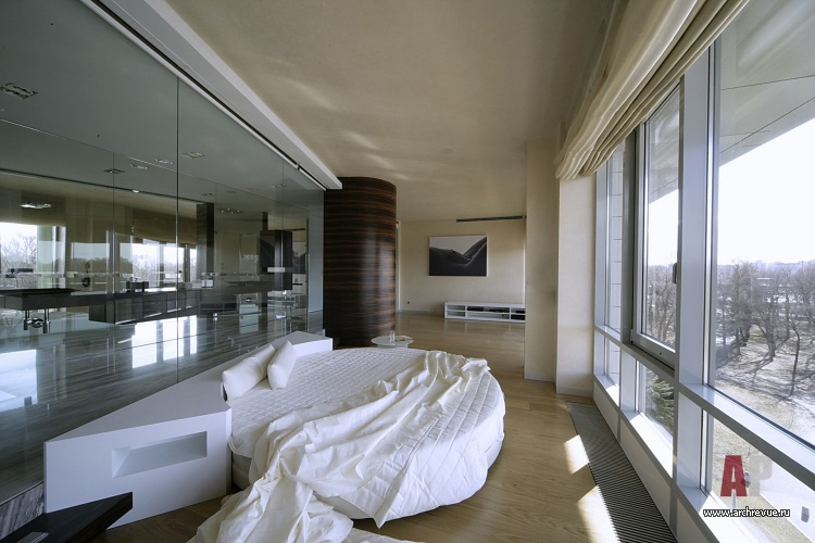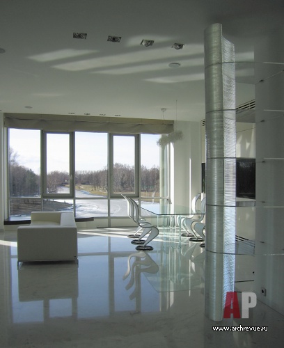 Квартира в Санкт-Петербурге окнами обращена на нетронутый человеком пейзаж. Согласно замыслу архитекторов небо, деревья и вода являются частью ее интерьера. Первоначально архитекторы начали работать с одной квартирой (площадью 300 кв. м), но в процессе заказчик приобрел еще одну – этажом выше.