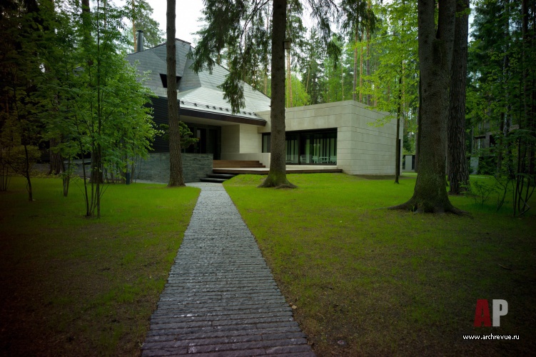 Двухэтажный дом в стиле модернизм был создан в ходе реконструкции существующего кирпичного здания, набранного из трех не связанных между собой объемов под одной кровлей. Изначально фасады были выделены цветом – салатовым, розовым и желтым. В ходе строительных работ объемы были соединены в общее целое, а планировка максимально рационализирована.