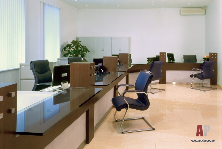 Перед архитектором была поставлена задача создать грамотно спланированное, комфортное для работы и внешне запоминающееся пространство офиса банка. Следовало реконструировать историческое здание в центре Москвы, сохранить классический лепной декор, каменную отделку стен и общее парадное настроение, присущее стилю ампир.