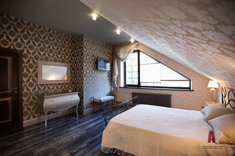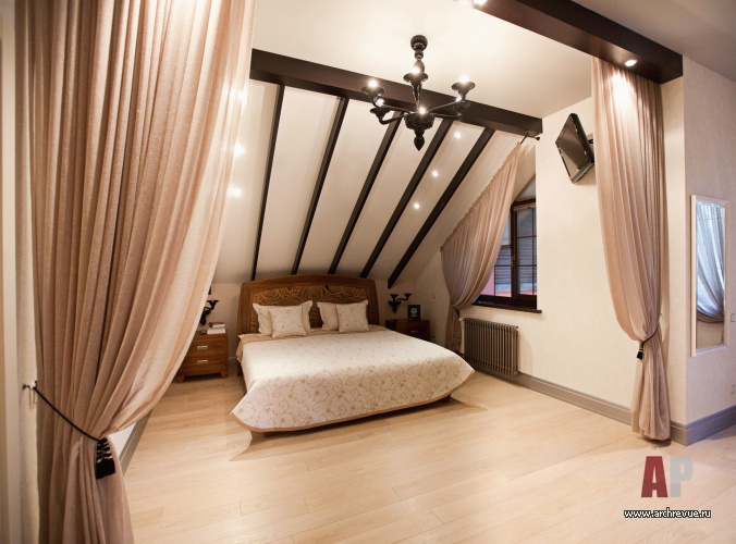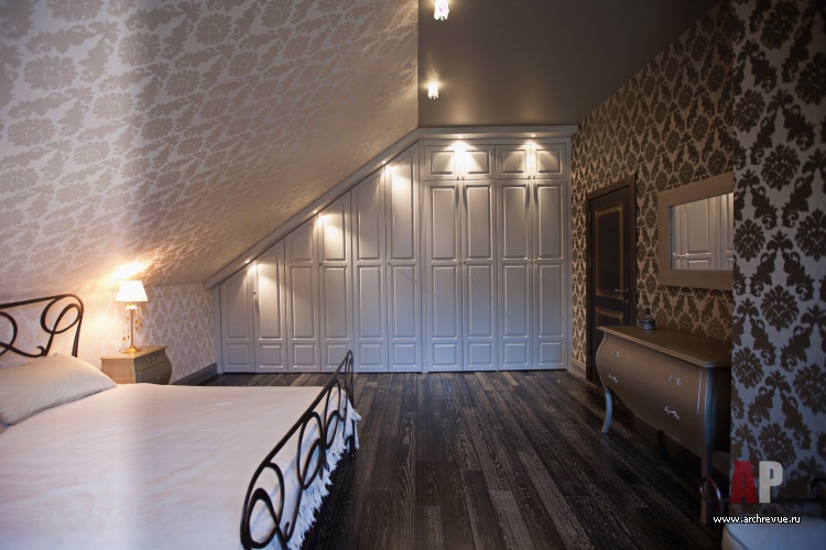 Она рифмуется с потолочными балками и служит местом для хранения мелких предметов и книг. Второй этаж занимают апартаменты хозяев дома, в мансардном этаже находятся детские комнаты, гостевая комната и спортивный зал.