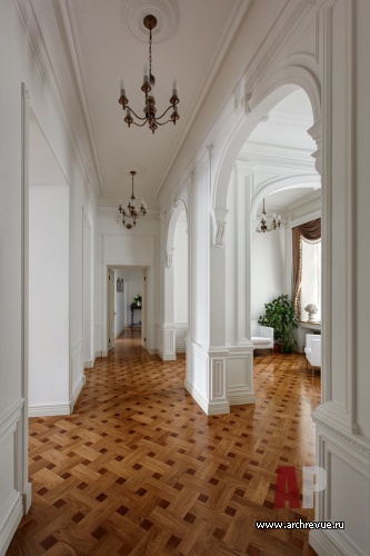 Следовало создать респектабельный и одновременно функциональный интерьер на месте бывших коммунальных квартир.