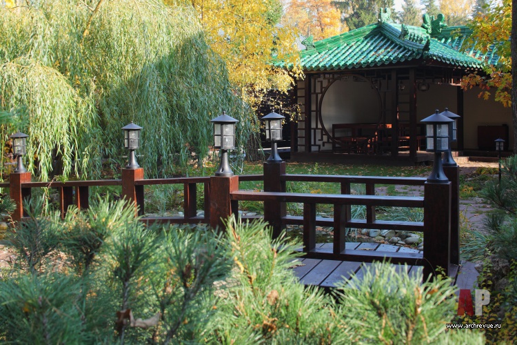 Заказчики много лет прожили в Китае и потому свой подмосковный дом видели только в этой стилистике. В традиционном китайском стиле выполнен не только фасад и интерьеры главного дома, но и ландшафт. На территории удалось создать настоящий китайский сад с прудом, мостом, ручейками и беседкой для чаепития.
