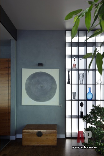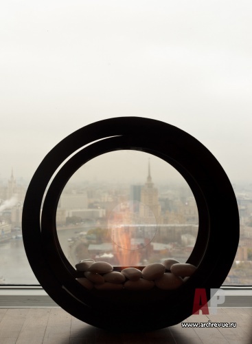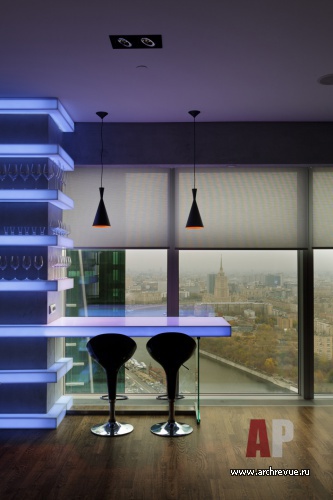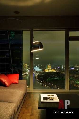 Квартира в одной из стеклянных высоток в районе Москва-Сити была сдана застройщиком под отделку. Планировка была обозначена, основные коммуникации разведены, потолки подшиты, полы выстелены, санузлы полностью укомплектованы, даже светильники частично смонтированы. Перед дизайнером была поставлена задача преимущественно декораторскими средствами создать комфортное и уютное жилье в довольно сжатые сроки (на все работы отводилось 6 месяцев).