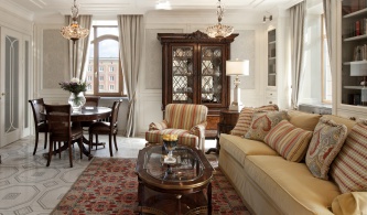 Полы выложены мраморными плитами или паркетом из палисандра. Текстильный дизайн выполнен в элегантной французской стилистике. Мебель в стиле ар-деко привезена из Америки, современные предметы соседствуют с антикварными.