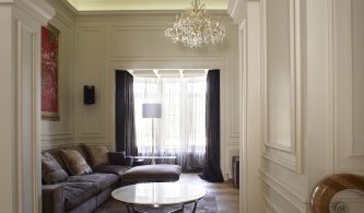 Трехэтажный особняк в стиле американского ар-деко создан как загородный дом для временного проживания, приема гостей и дружеского общения. За основу оформления его интерьеров архитектор Татьяна Миронова взяла антикварные предметы из коллекции хозяев: американские антикварные люстры из формованного стекла.