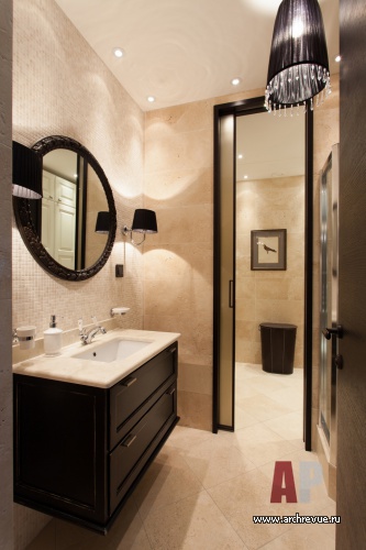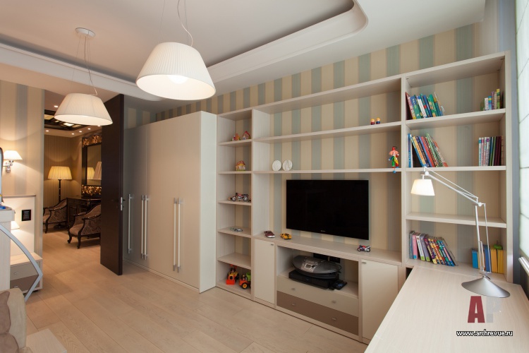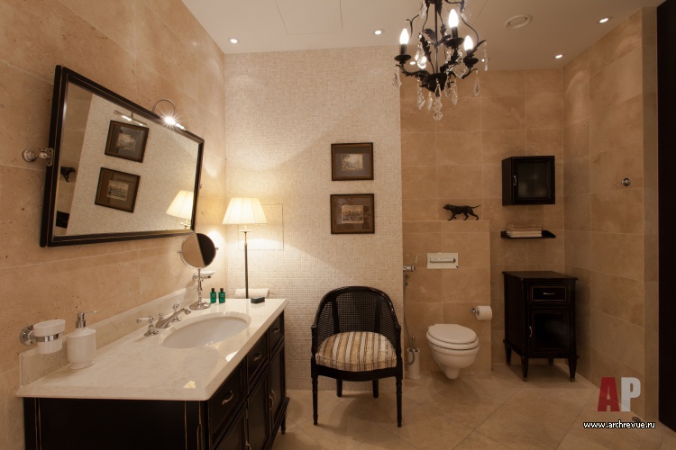 Декораторы Юрий Зубенко и Ольга Щербакова спроектировали ее для семейной пары с двумя маленькими детьми. Основные акценты они сделали на благородные пастельно-бежевые цвета и фактуру натурального дерева и камня. В интерьере присутствуют уникальные авторские изделия (потолочные витражи, столярные изделия) и предметы от итальянских брендов, прославленных деликатным подходом к классическому наследию.