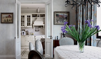Четырехкомнатная квартира, расположенная в современном жилом комплексе, выглядит так, словно находится в тихом московском центре. Ее неоклассический по духу интерьер наполнен культурными и историческими реминисценциями, вызывающими в памяти традиционные итальянские интерьеры.