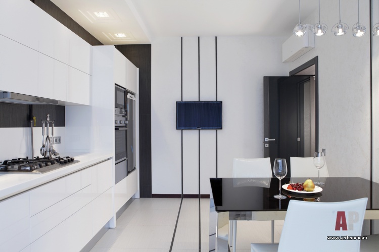 Основные декоративные акценты в интерьере сделаны на дорогие отделочные материалы, скрытый свет и светодиодную подсветку, а также актуальную мебель от европейских дизайнеров.
