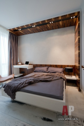 Гостевая спальня кресло De Sede; кровать, шкаф, конструкция над кроватью - индивидуальные изделия