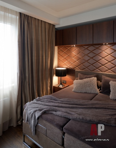 Спальня пуф Baxter; шкафы, стол, балка под экран – индивидуальные изделия; регулируемая ортопедическая кровать Tempur, поставщик «Спальные Системы»