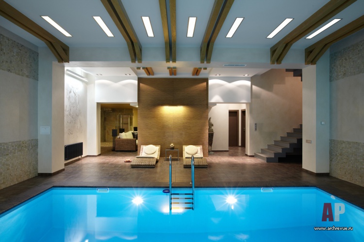 Третий, мансардный этаж с высокими потолками отведен под зону отдыха, кабинет и тренажерный зал. Цокольный этаж задуман как большой SPA-центр на дому с бассейном, сауной, душевой и зоной для релакса с домашним кинотеатром.