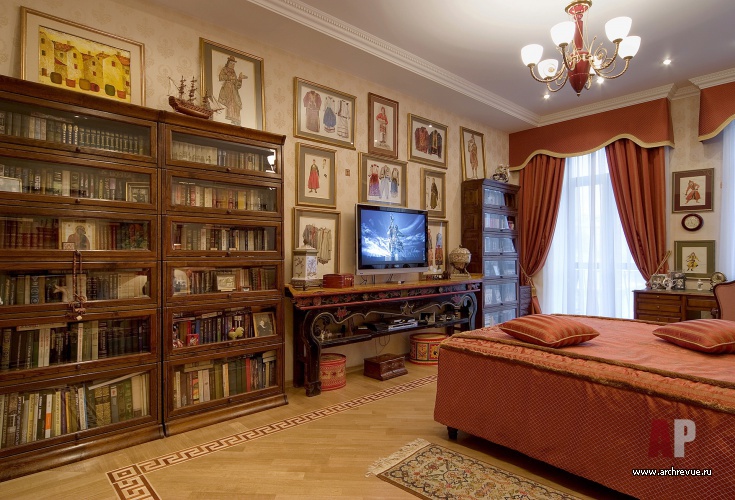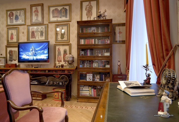 Небольшая квартира расположена в историческом особняке в тихом московском центре. Раньше на ее месте находилась четырехкомнатная коммунальная квартира. Перед архитекторами была поставлена задача создать уютное жилье для женщины, увлеченной искусством. Следовало сохранить дух быта старомосковской интеллигенции и разместить большую коллекцию живописи, графики, антиквариата и книг, включающую более полусотни картин и театральных эскизов.