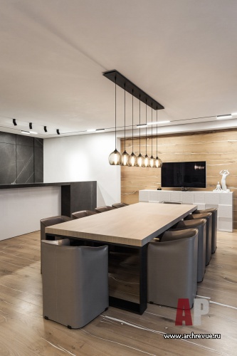Большая квартира в центре Москвы выполнена художником по интерьерам Диной Межевовой (в составе бюро UNK project) в стилистике экологичного минимализма. Заказчики обратились с пожеланием создать презентабельный интерьер, высокий статус и «дороговизна» которого выражалась бы не в декоративном излишестве и обилии золота, а в качественных природных материалах, дизайнерской мебели и комфортной эргономике.