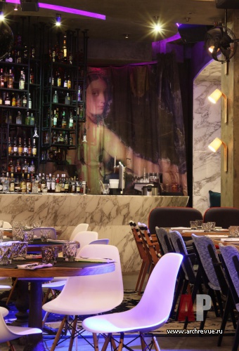 Интерьер клуба-ресторана PPL – это нестандартное дизайнерское пространство, в котором отражены самые актуальные мировые тенденции. Формируя нетривиальный интерьер для креативных людей, авторы проекта смело миксуют на первый взгляд несочетающиеся вещи: дорогой мрамор, фанеру, зеркала, металл, бархат, ковры и покраски под бетон.