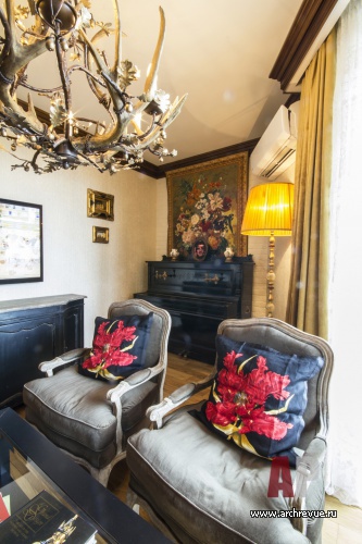 Для поклонников искусства, заядлых путешественников и обладателей большого собрания антикварных предметов, привезенных из Европы, дизайнер Сергей Кривошеев спроектировал квартиру, которая по своему декоративному наполнению напоминает загородный дом. Новое жилище покупалось с расчетом, что предметы из коллекции можно будет достойно экспонировать.
