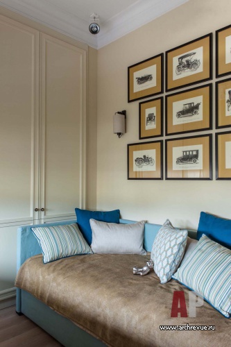 Интерьер этой пятикомнатной московской квартиры как глоток свежего воздуха в череде интерьеров типовых новостроек. Глядя на яркий, сочный, наполненный синими и бирюзовыми оттенками проект, трудно поверить, что изначально заказчики хотели светлый, совершенно спокойный интерьер. Молодая семья с двумя маленькими детьми обратились к дизайнерам с пожеланием создать квартиру в бежевых тонах.